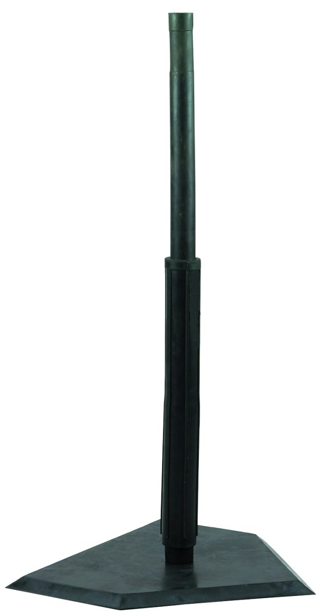 Construcción robusta de goma. Soporte telescópico ajustable para pelotas de 22 a 36 pulgadas de altura. Incluye soporte de goma para pelotas, tubo cilíndrico de acero más resistente y poste. Base de goma maciza de 15 pulgadas para el home con bordes biselados. Pro batting tee Markwort